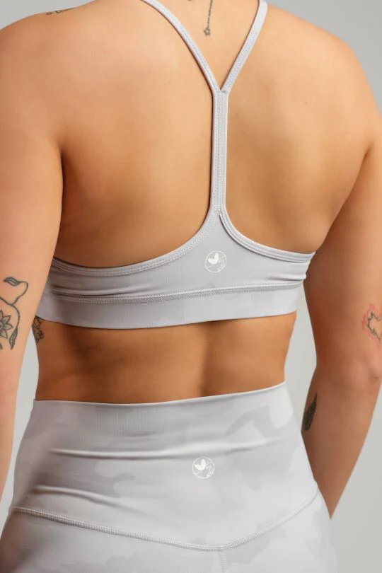 Simple with clean lines and light to moderate support, intended for A-C cups. Our BLISS Camo Low Impact Sports Bra has quick drying technology, dri-fit for absorbing sweat. Removable pads to suit your preference and customize the cup size as needed. Great for your favourite Yoga Flow!
